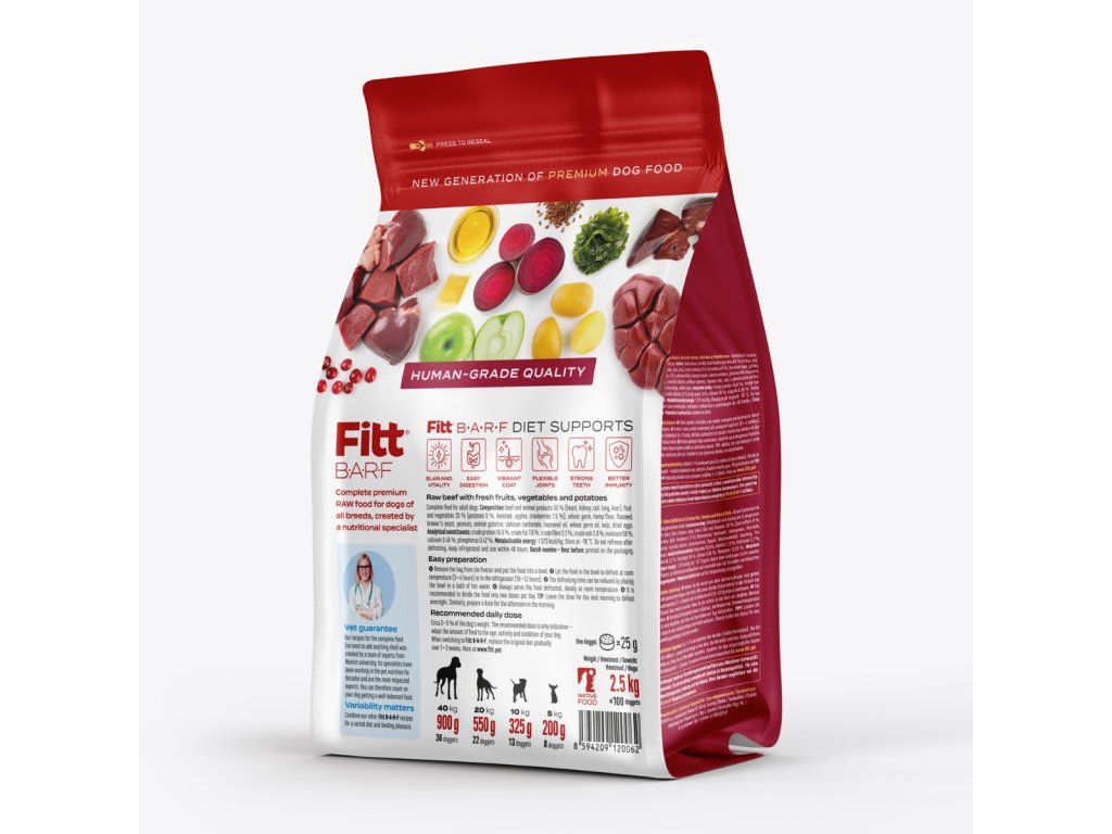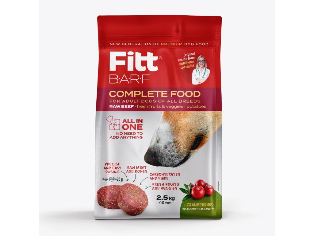 Fitt BARF - hovězí kompletní krmivo pro psy, mražené dogety 2,5 kg