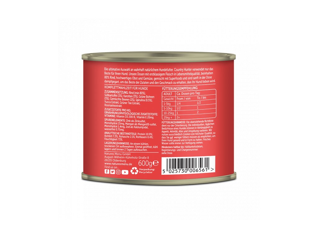 - Konzervy Country Hunter jsou naplněny těmi nejlepšími surovinami, zapečetěny a poté jemně povařeny. Proto si zachovávají ty nejlepší potřebné živiny.