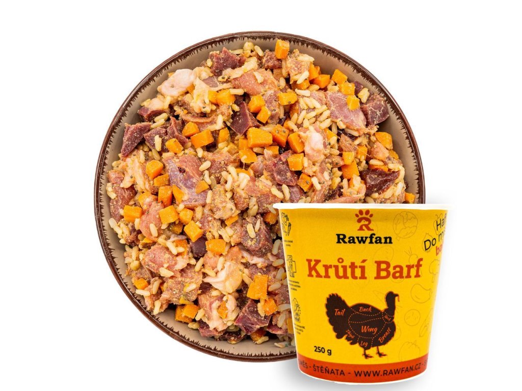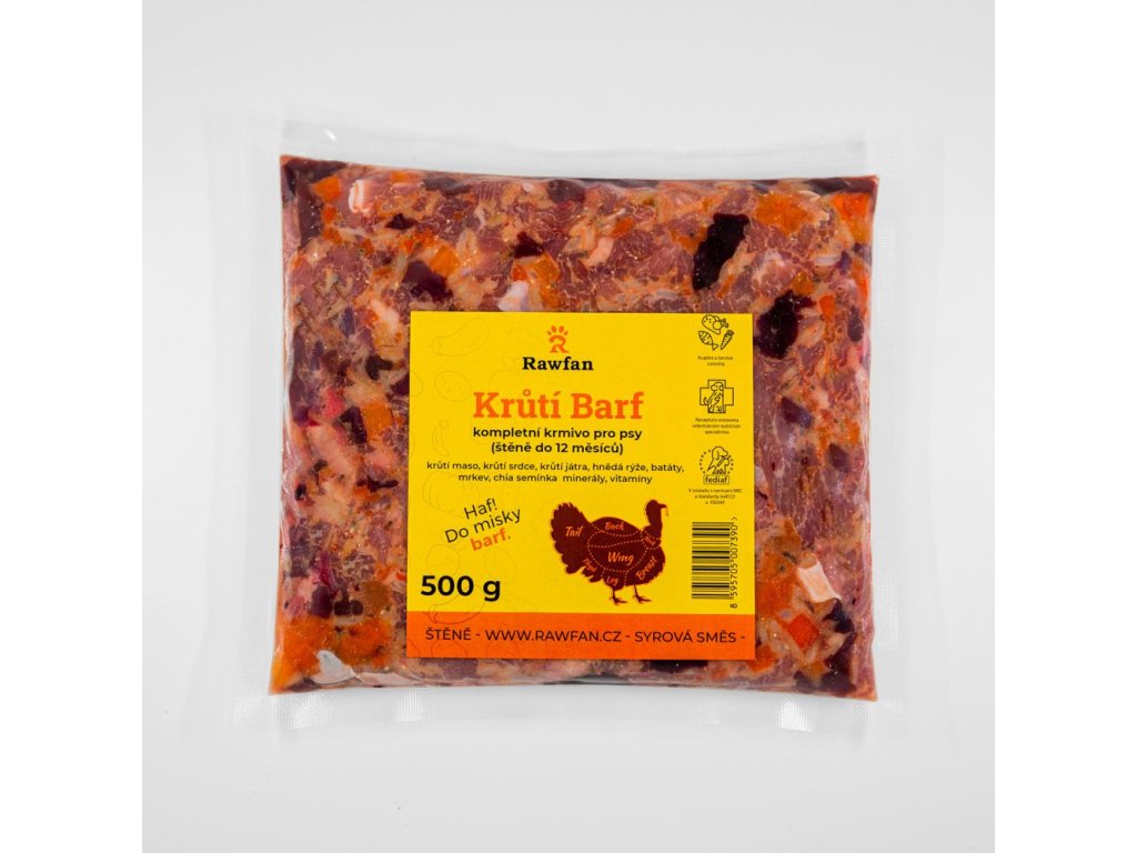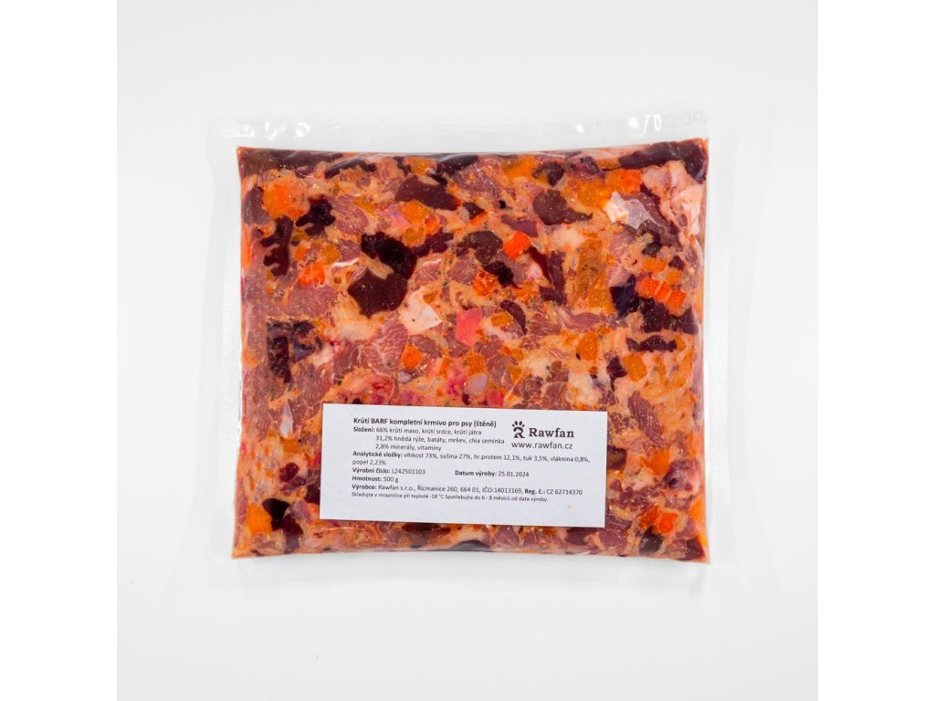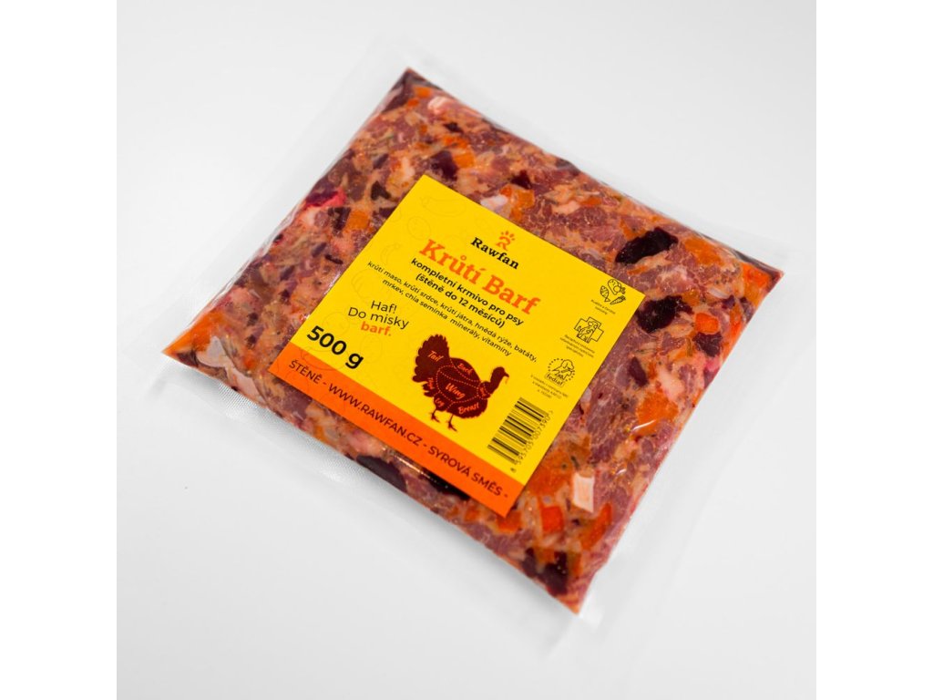 - 65% krůtí svalovina, krůtí srdce a krůtí játra