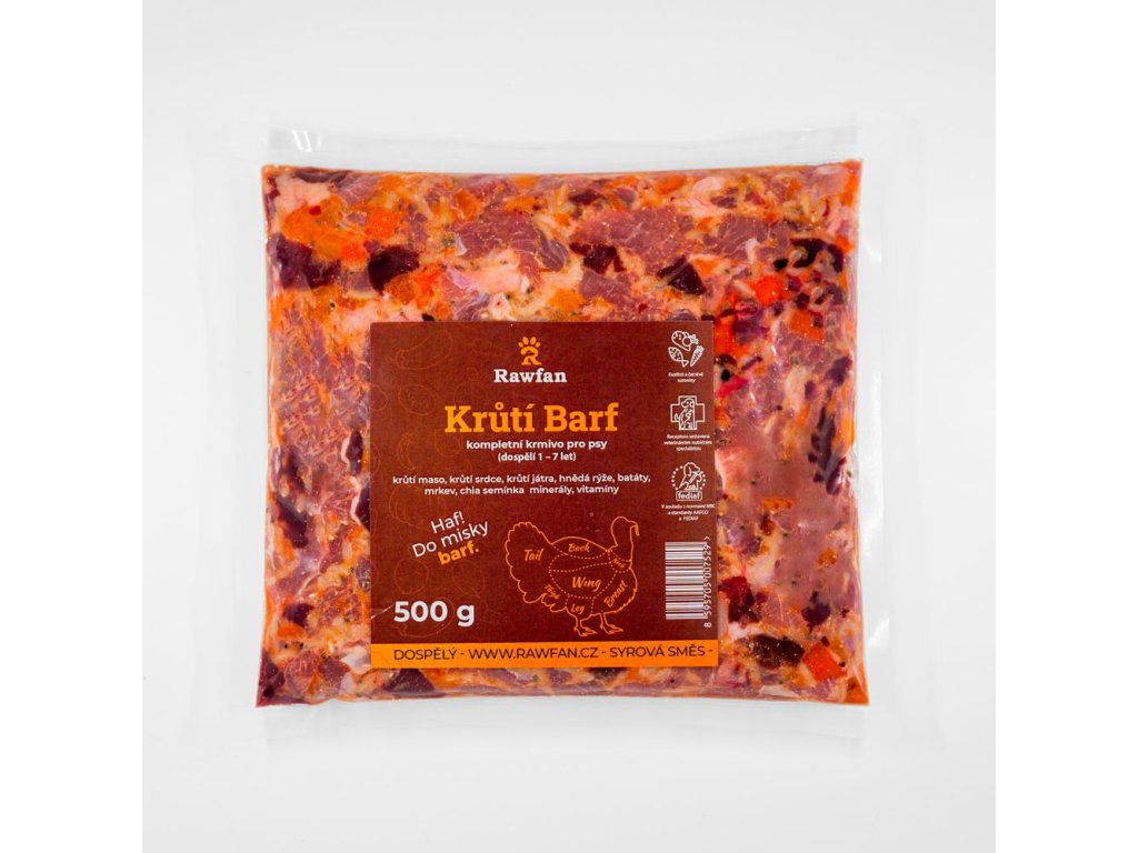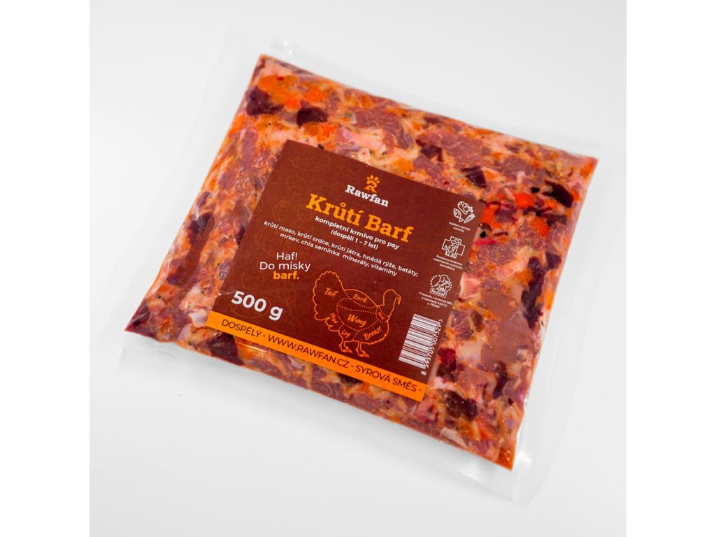 - 63 % krůtí svalovina, krůtí srdce a krůtí játra