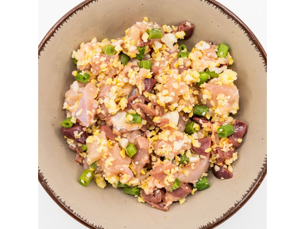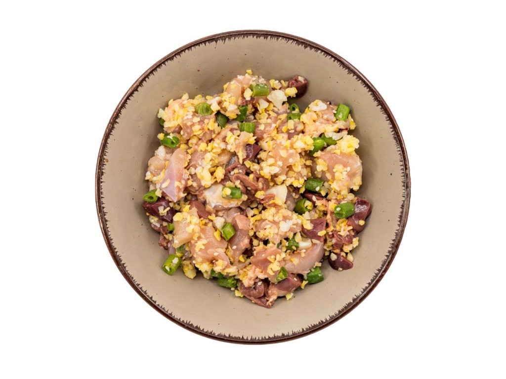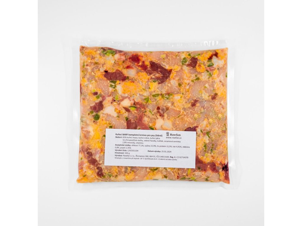- 65% kuřecí svalovina, kuřecí srdce a kuřecí játra