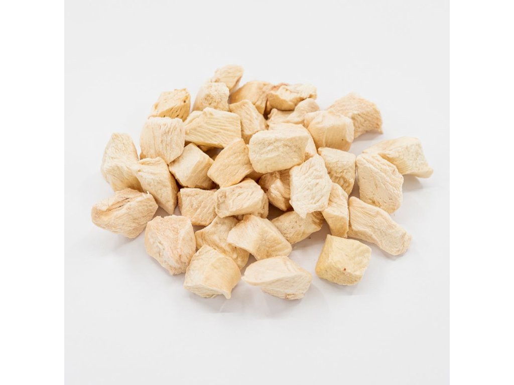 Mrazem sušené kuřecí kousky se 100% obsahem masa jsou výbornou pochoutkou pro Vašeho pejska.