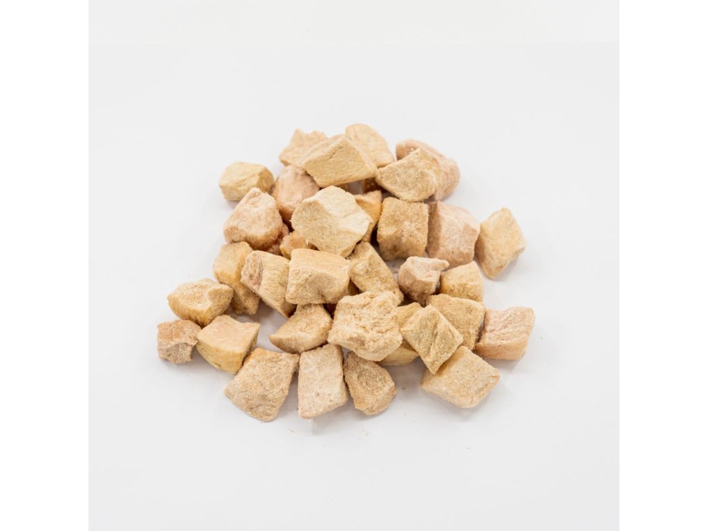 Mrazem sušené kuřecí kousky se 100% obsahem masa jsou výbornou pochoutkou pro Vašeho pejska.