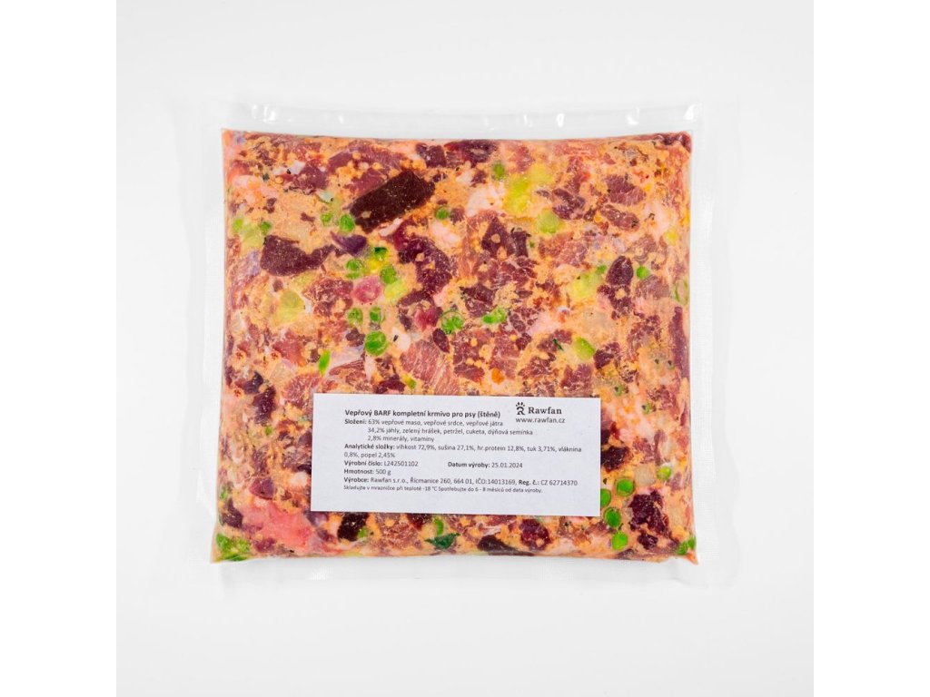 - 62,5% vepřová svalovina, vepřové srdce a vepřové játra